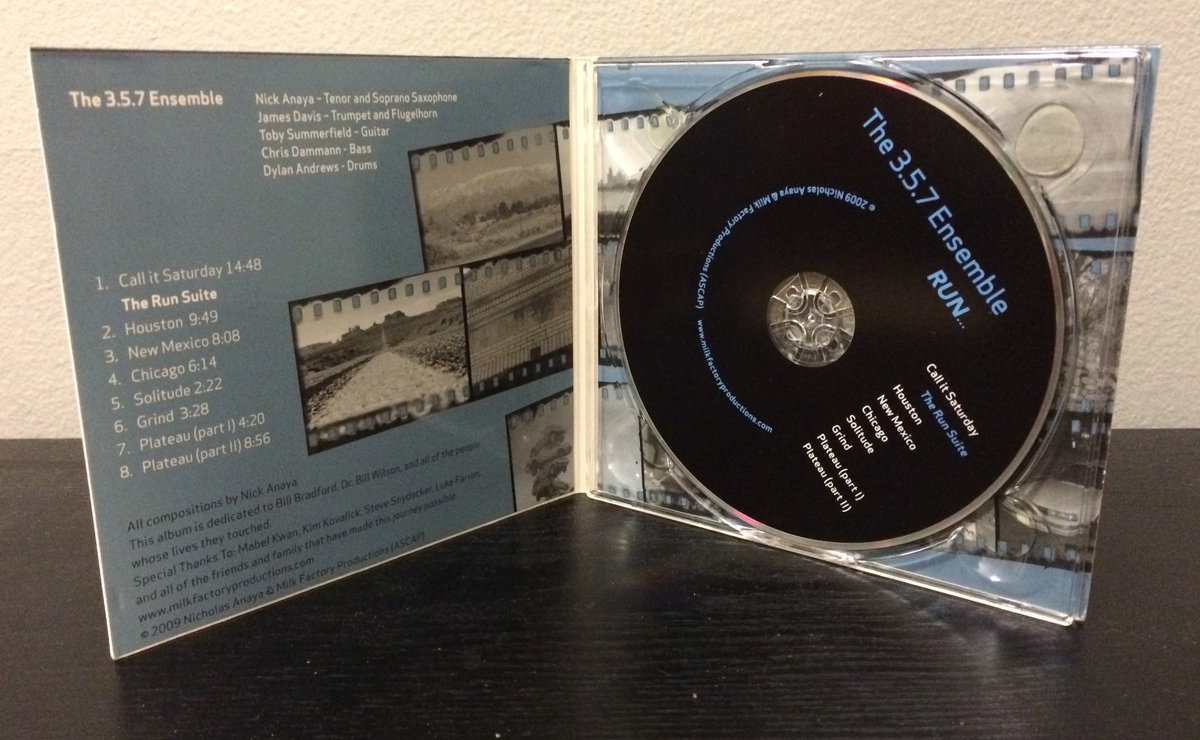 The first Studio recording of the 3.5.7 Ensemble. All original compositions. With artwork depicting photos from the inspiration of "The Run Suite".